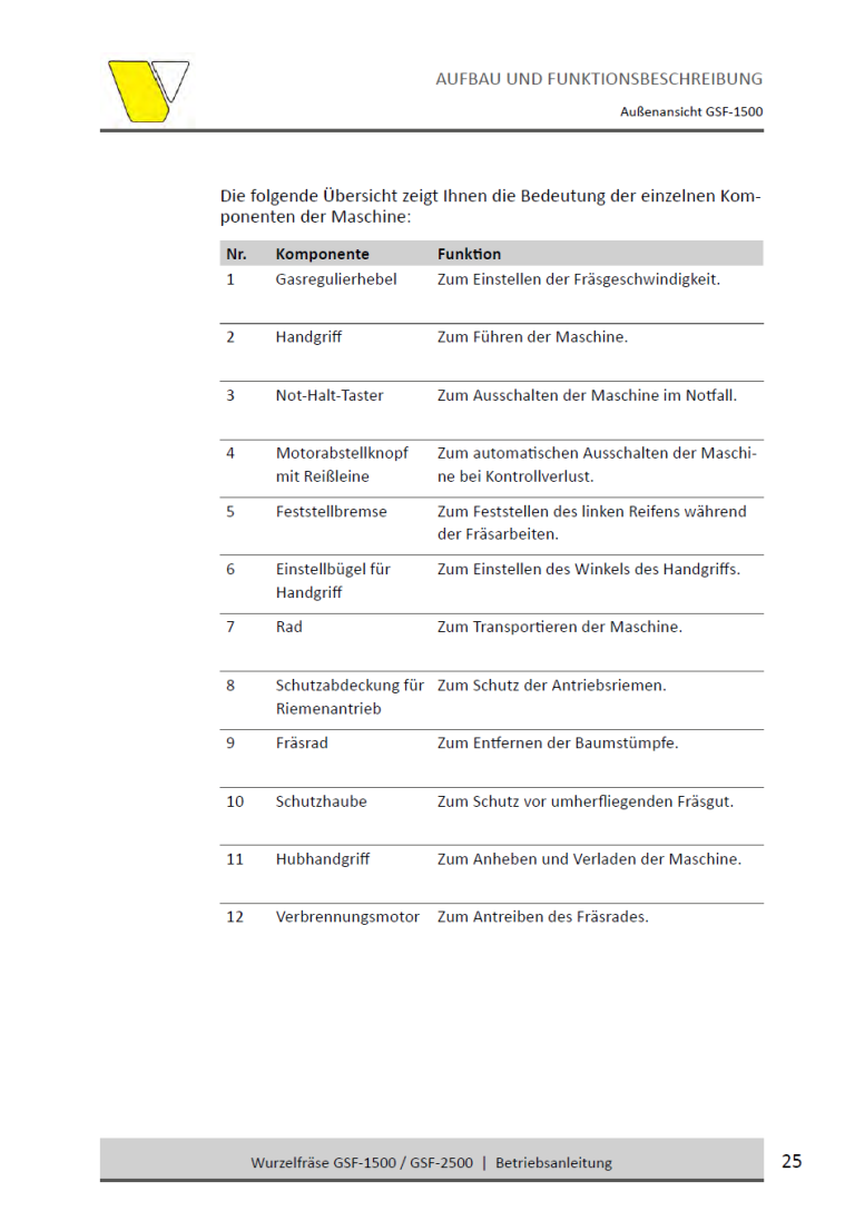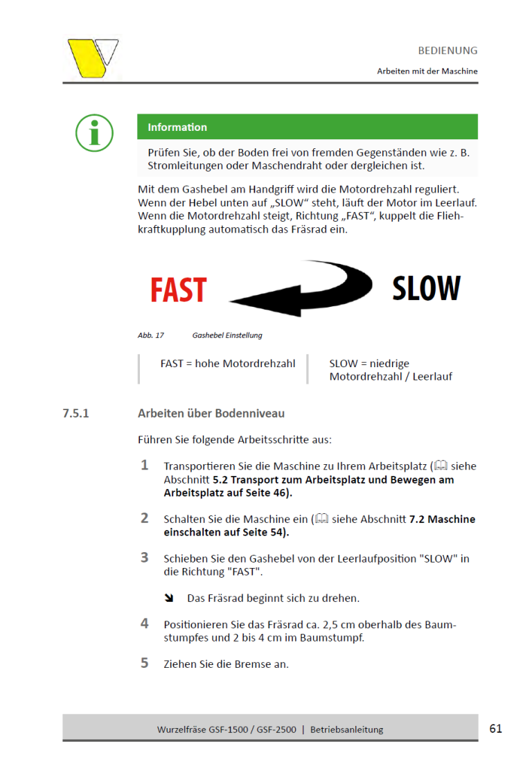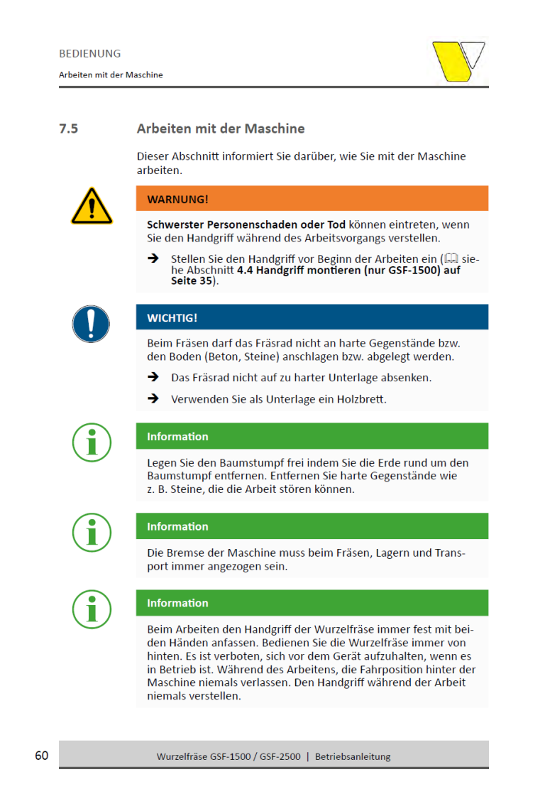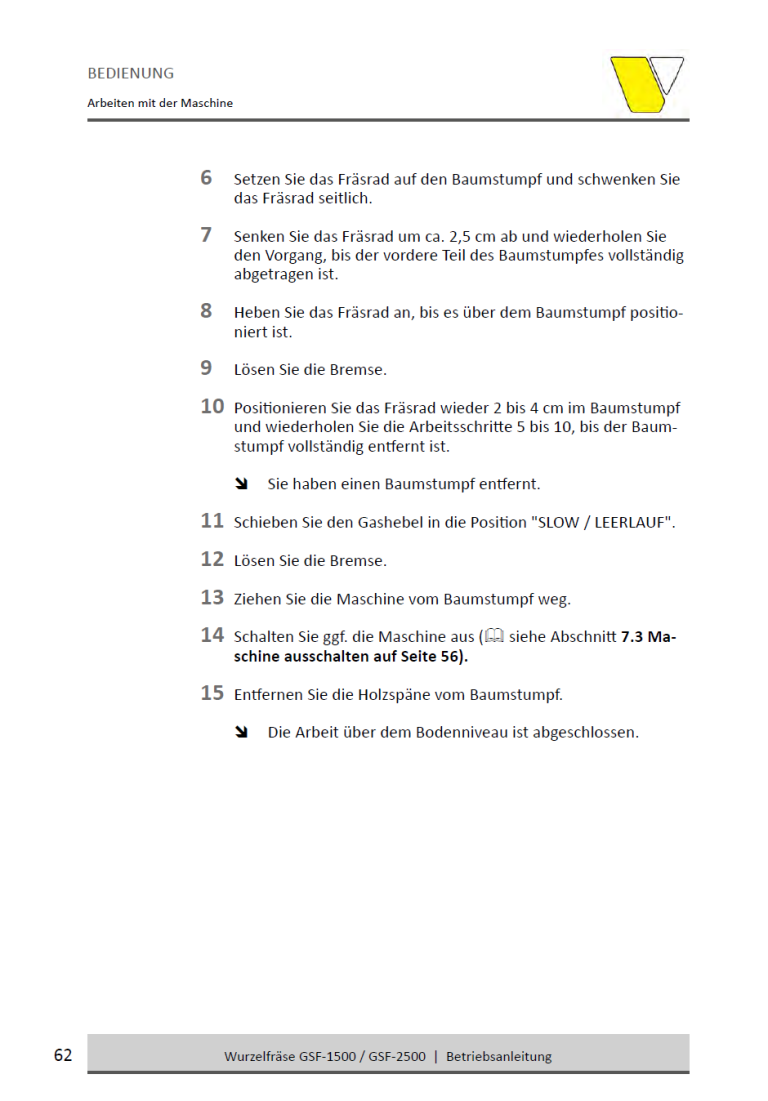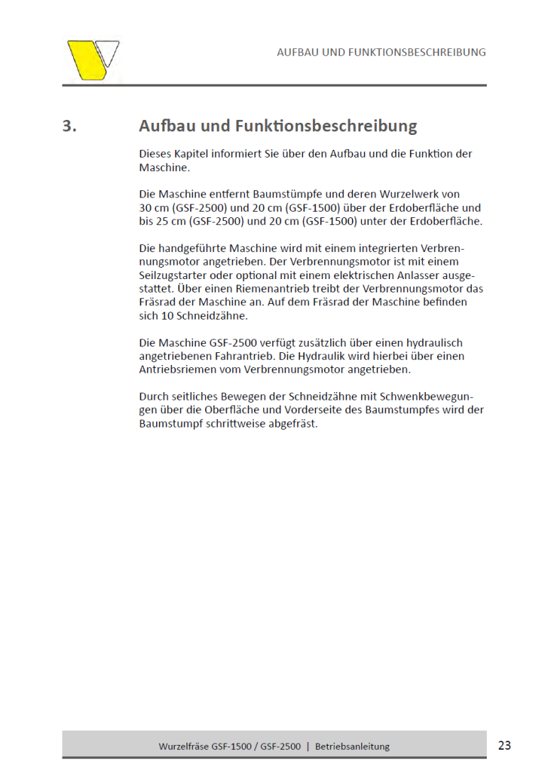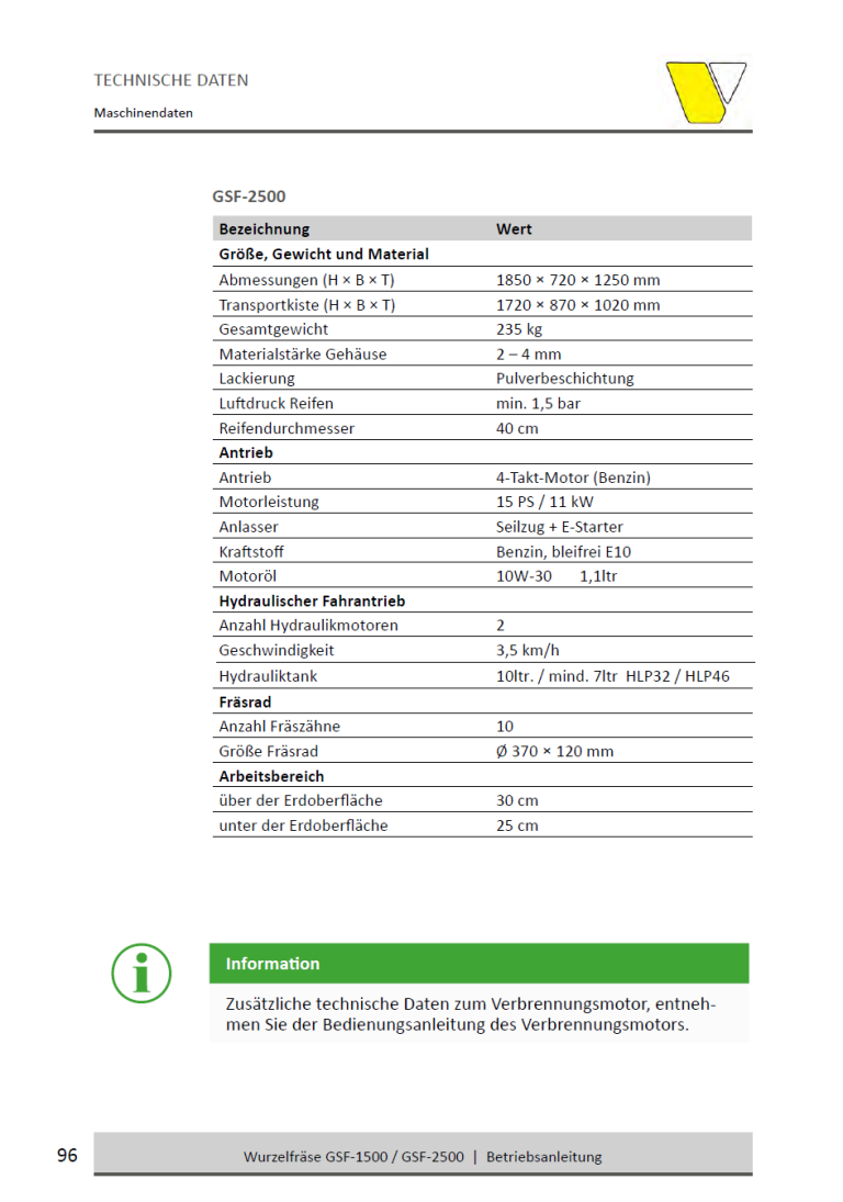 • Frästiefe: Bis zu 25 cm unter und über Bodenhöhe