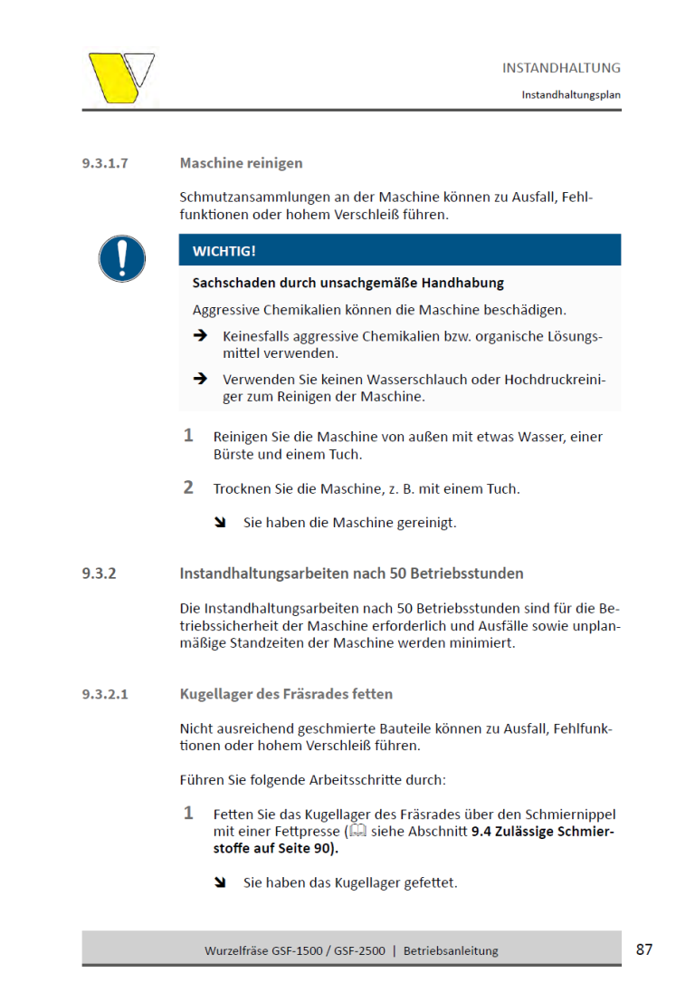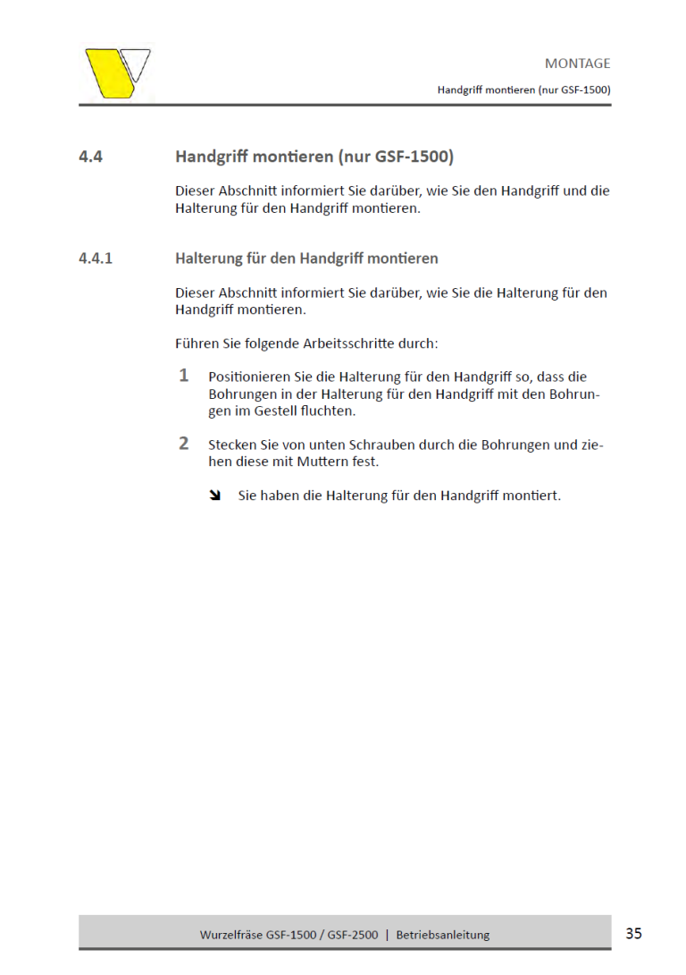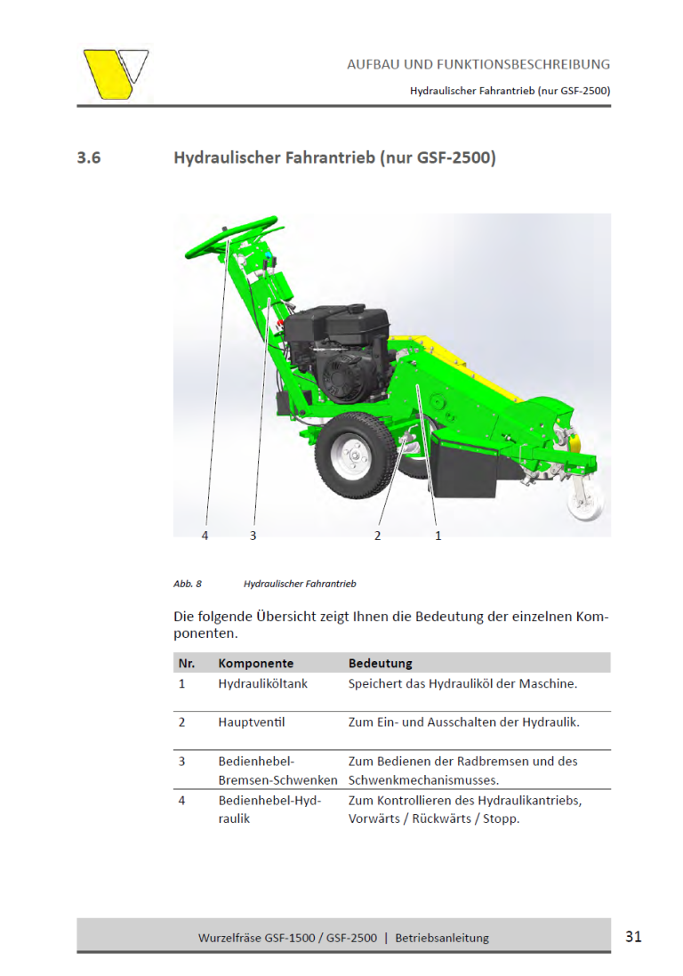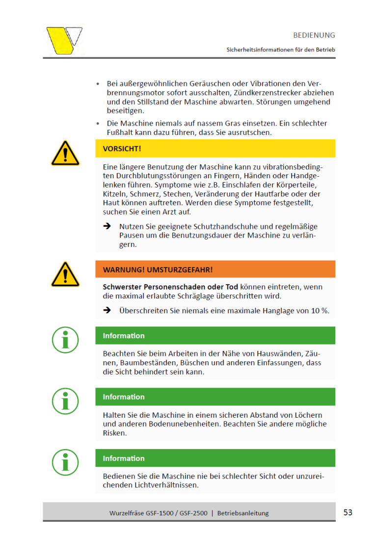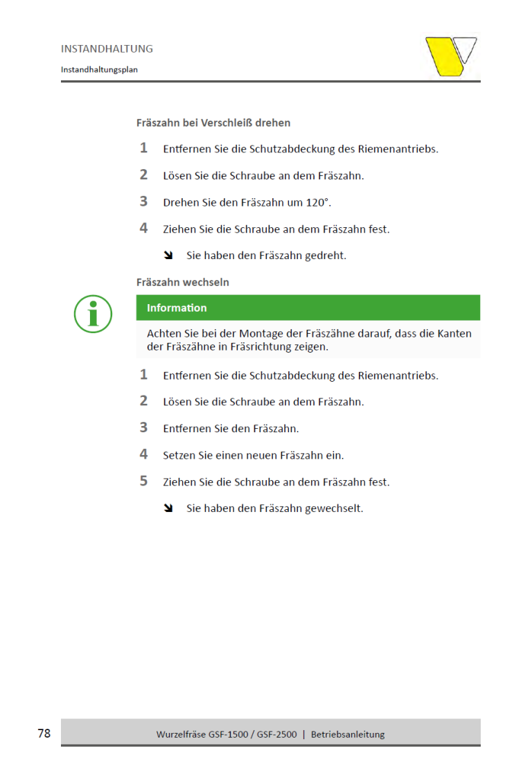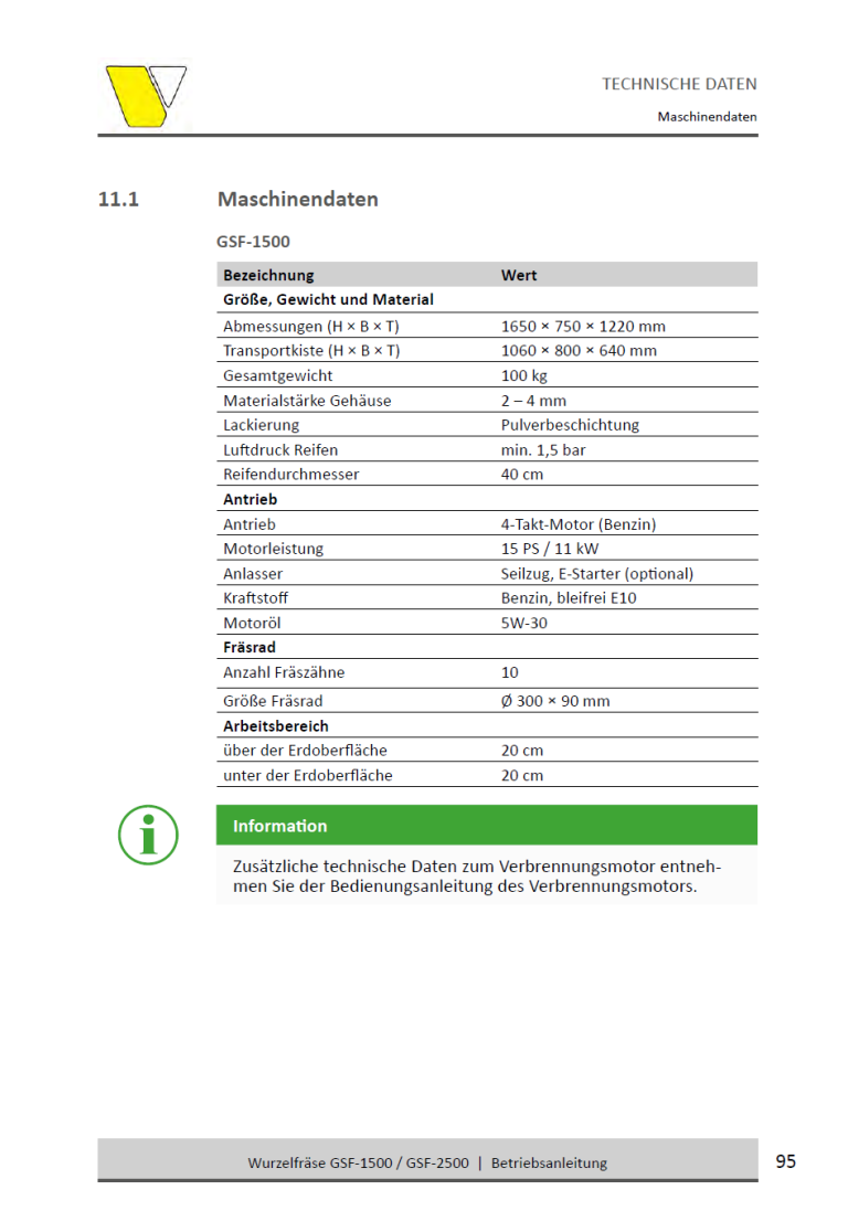 • Frästiefe: Bis zu 25 cm unter und über Bodenhöhe